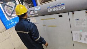 TogglePemeriksaan Kompresor AIRMAN. Dalam operasional industri manufaktur modern, udara bertekanan merupakan “energi keempat” yang menggerakkan lini produksi. Bagi perusahaan ketersediaan pasokan udara yang stabil dari unit kompresor berkualitas seperti AIRMAN SAS37S sangatlah vital. Namun, performa mesin yang tangguh tetap memerlukan pengawasan teknis yang disiplin. Telah dilakukan Pemeriksaan Kompresor AIRMAN secara menyeluruh untuk memastikan efisiensi energi dan keamanan operasional tetap terjaga di fasilitas produksi mereka.
